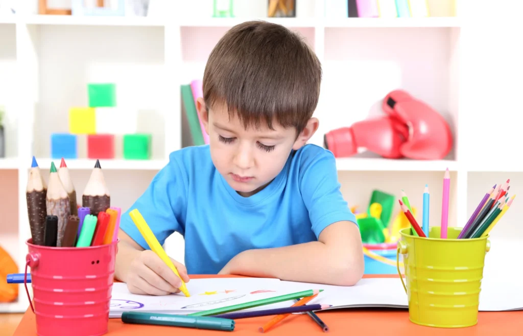 - Dziecko ma trudności z utrzymaniem uwagi podczas rysowania, kolorowania lub pisania, często odrywa się od zadania, nie kończy pracy.